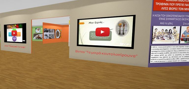 Το εικονικό μουσείο περιλαμβάνει ένα προθάλαμο με ενημερωτικό υλικό και αινίγματα, μια πράσινη αίθουσα για τα τρόφιμα που πρέπει να καταναλώνονται καθημερινά, μια πορτοκαλί για εκείνα που πρέπει να καταναλώνονται μερικές φορές την εβδομάδα και μια κόκκινη για εκείνα που πρέπει να καταναλώνονται λίγες φορές το μήνα. Επίσης, διαθέτει playwall με διαδραστικά παιχνίδια, σχετικά με την αειφόρο διατροφή (σταυρόλεξα, παζλ, κουίζ, ιπποδρομίες), τα οποία είναι ενσωματωμένα στο εικονικό μουσείο με κώδικες ταχείας απόκρισης (QRs).