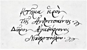 Les titres des livres que Nicolopoulo collectionnait depuis longtemps pour constituer une grande bibliothèque publique dans la Grèce libérée représentaient la vision du futur donateur quant au type de livres de chaque catégorie qui allaient couvrir les besoins éducatifs principaux et immédiats du nouvel État en cours de constitution. La plupart des livres de la collection portent une annotation manuscrite de Nicolopoulo lui-même : «Patrimoine sacré d’Andritsaina. Don de Agathophron Nicolopoulo». Il ne s’y était jamais rendu. Il avait l’intention de déménager à Andritsena après l’acheminement de sa bibliothèque depuis Paris, mais alors qu’il emballait certains livres, il se blessa à la main avec un clou, contracta une infection et mourut.