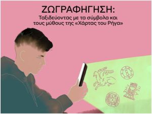 Ζωγραφήγηση: Ταξιδεύοντας με τα σύμβολα και τους μύθους της «Χάρτας του Ρήγα», το οποίο απευθύνεται σε μαθήτριες και μαθητές Γ΄, Δ΄, Ε΄, ΣΤ΄ Δημοτικού και τους γονείς τους.